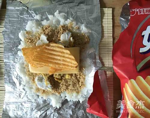 3再加上芝士片和薯片(或者玉米片,油条都可以)。
