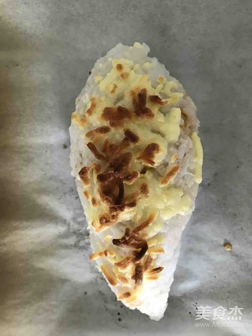 5卷成饭团,撒上马苏里拉芝士,如果要好的拉丝效果,一定多撒。如果侧重减肥,参考图中的量。