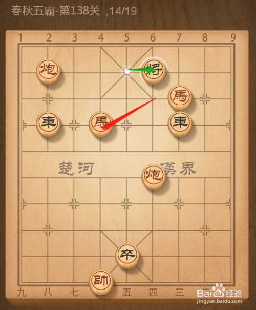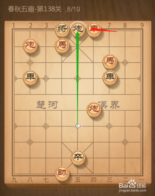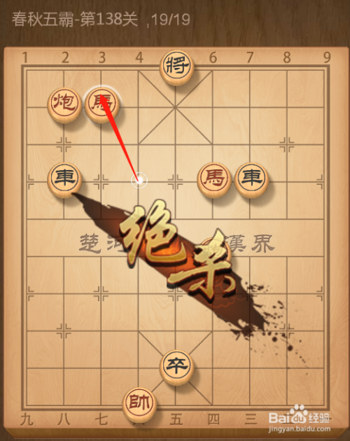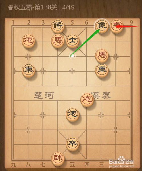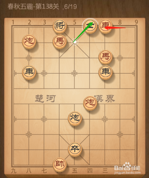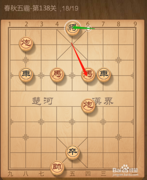 春秋五霸第一百三十八关通关共需19步,我们从图中可以看到,这一局,黑方实力强劲,此时黑方已经控制了红方,只需要黑车抄底将军,红帅就得输,所以红方必须掌握主动权,不给黑方机会将军。具体看下图步骤。