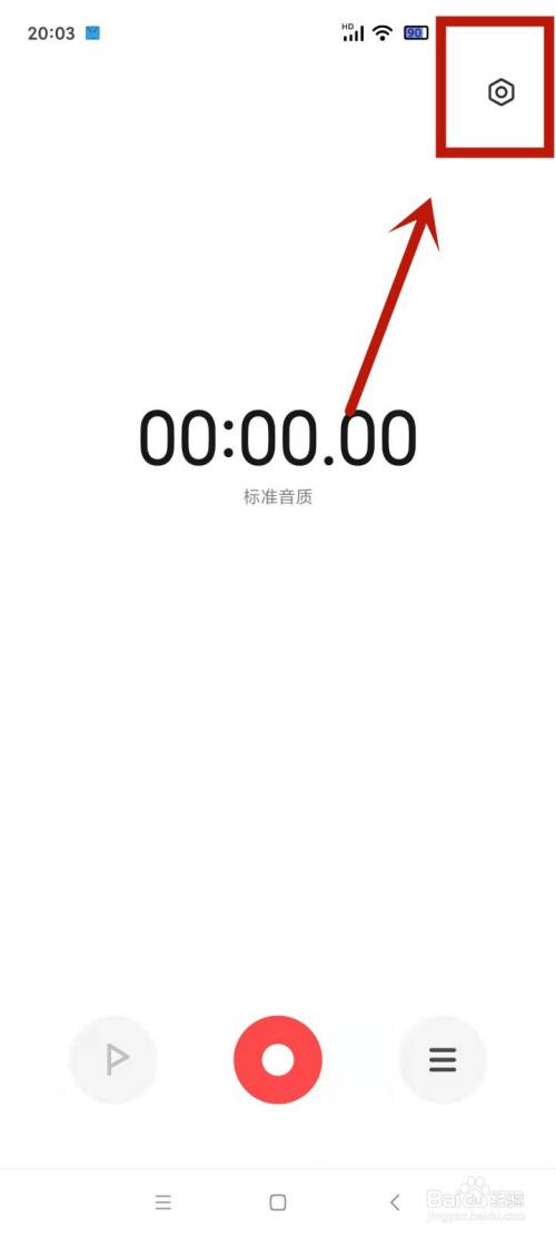 1.打开录音机,点击右上角的设置。