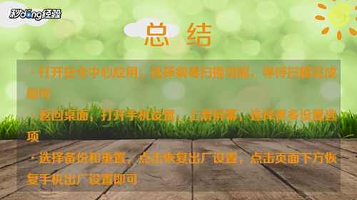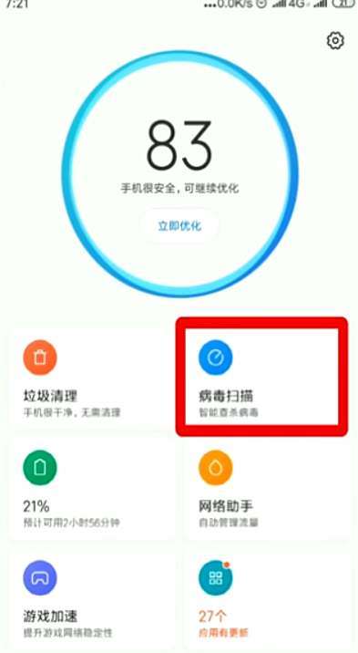 1方法一:在手机桌面上打开“安全中心应用”,选择“病毒扫描功能”,等待扫描完成即可。