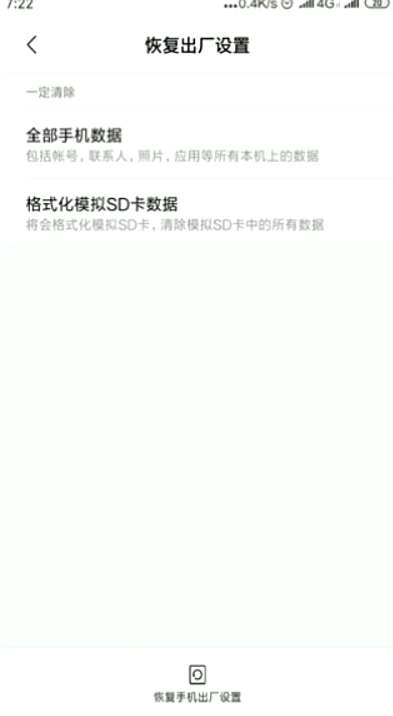 4点击页面下方“恢复手机出厂设置”即可。