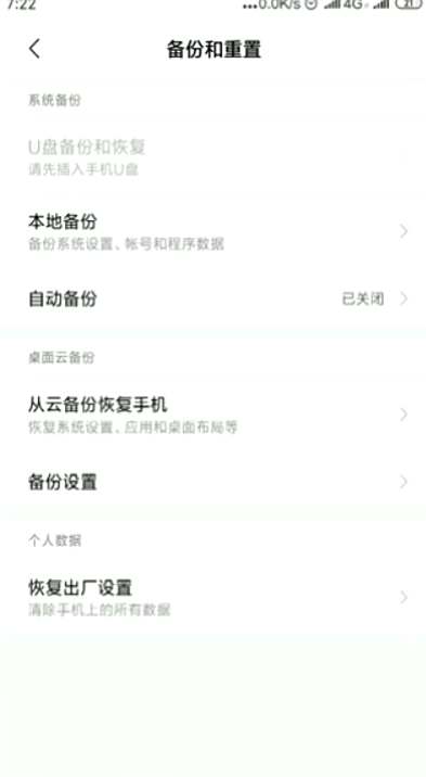 3上滑屏幕,选择“备份与重置”,点击“恢复出厂设置”,进入下一个界面。