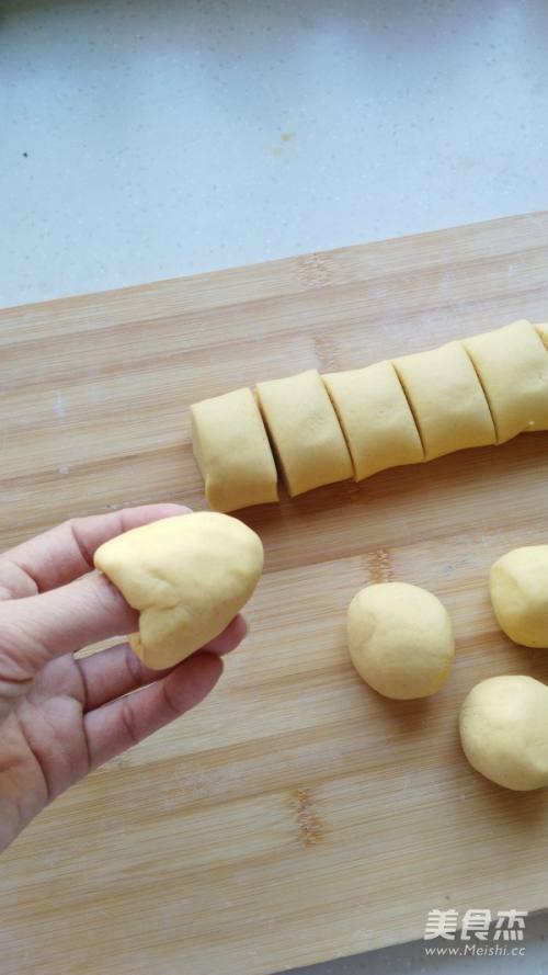 8将面团滚成长条状,分割成大小合适的剂子,每个剂子都滚圆。