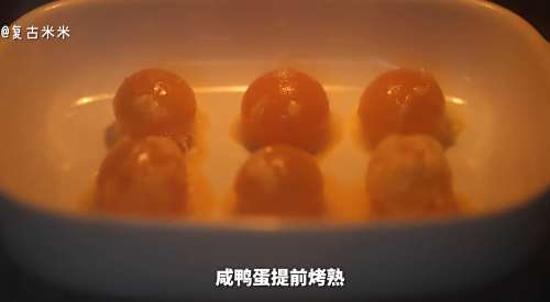 4咸鸭蛋黄提前烤熟。