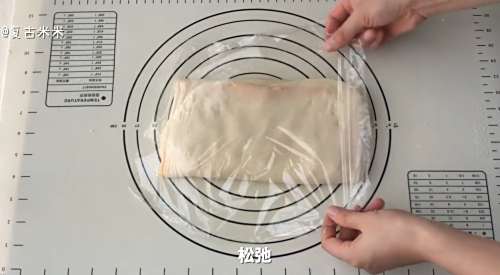 11松弛后再次擀开、折叠,覆膜松弛10分钟。