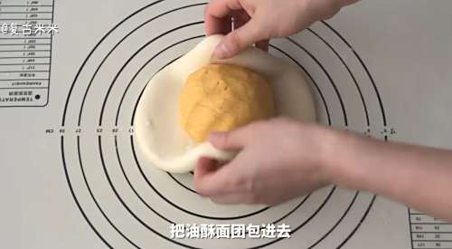 8把油酥面团包进去。