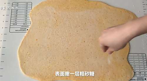 12最后擀成3-4毫米厚的面皮,撒上一层粗砂糖。