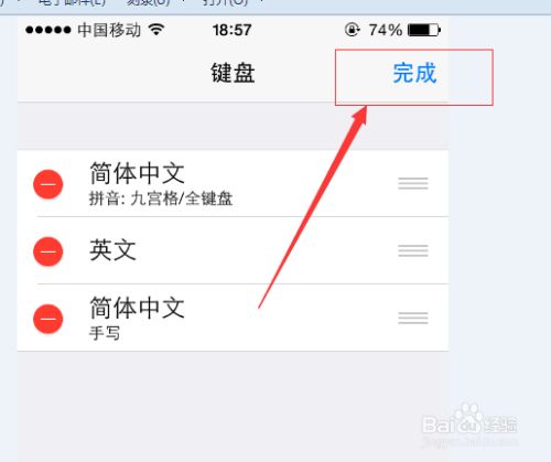 最后我们点击右上角的“完成”功能键,这时输入法删除成功。