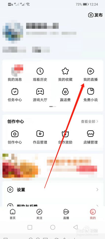 在我的界面点击“我的直播”