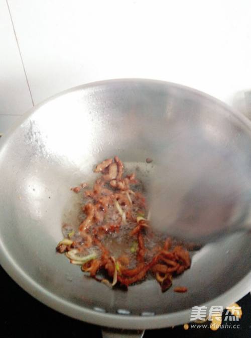 酱爆肉丝:肉丝200克 黄豆酱2勺 清水少许及 油