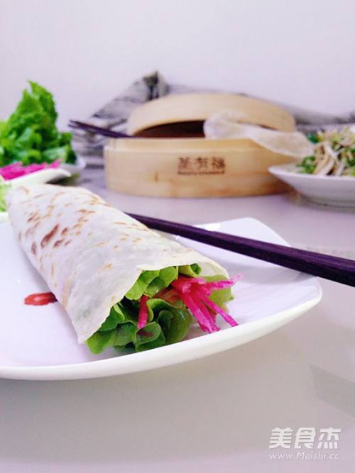 15出锅卷起小菜可以随意搭配,,心里美刨丝,黄瓜也可以刨丝一起卷!