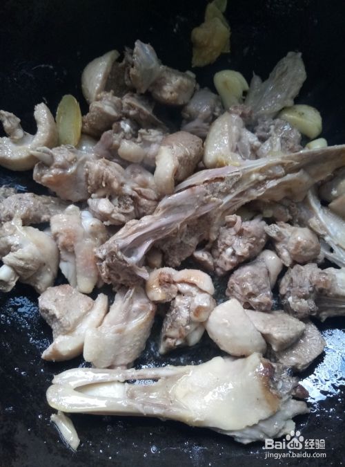 炒至鸭肉出油,放生抽、老抽、料酒、耗油、白糖均匀上色
