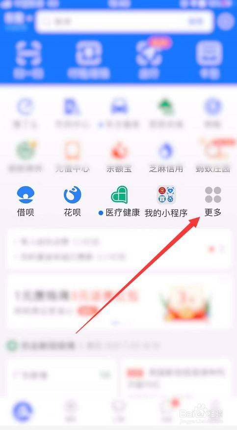 首先,打开支付宝后,点击功能区的“更多”选项