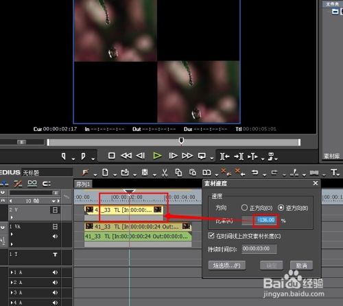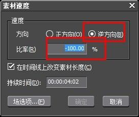 在EDIUS中,倒放的快捷设置方式是设置播放速速“ALT+E”,记得在速度前面加上负号。-100就是完全的倒放。