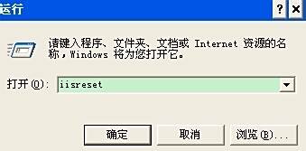 点击 “开始”->“运行”,输入iisreset 回车。