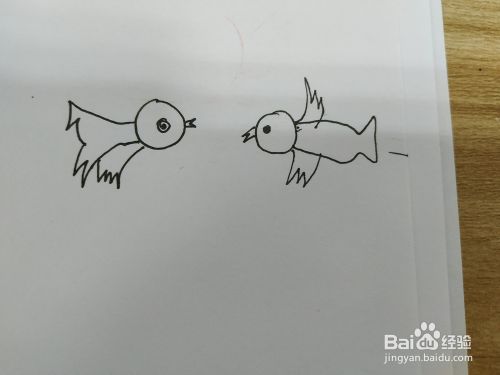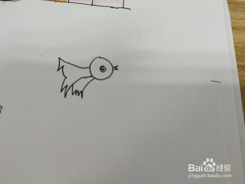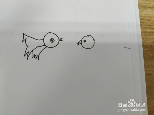 接着我们画另一只小鸟的头部和嘴巴,眼睛。如下图