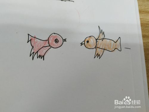 最后我们来为小鸟涂上颜色,两只漂亮的小鸟就画好了,你学会了吗