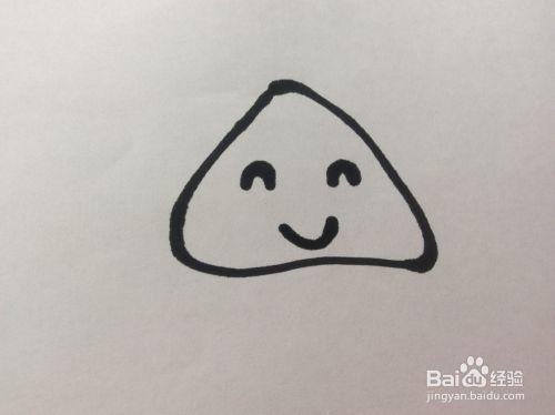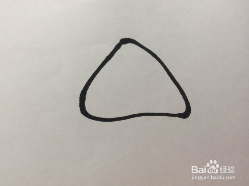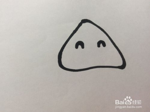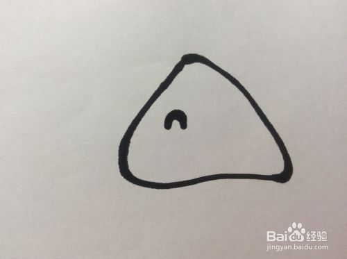 在三角形的下侧画一个弯弯的稍微大一些的开口方向向上的圆弧形。