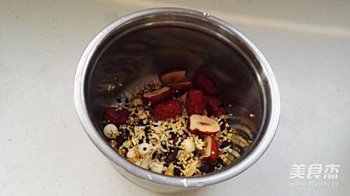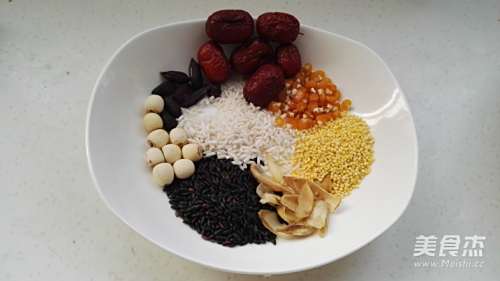 1原料:玉米、莲子、黑花生、黑米、大黄米、糯米、灰枣、百合。