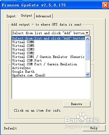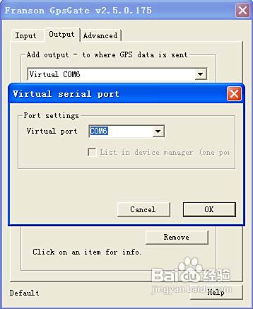 这里搜索的是第四端口是GPS的输入端口,我们需要设置输出端口也就是共享端口。点击Output出现如下图: