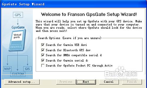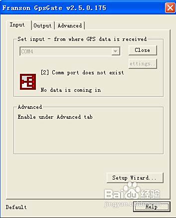 关闭设置好的GPSgate,然后再次打开出现如下图(出现红色的是没有设置好的):