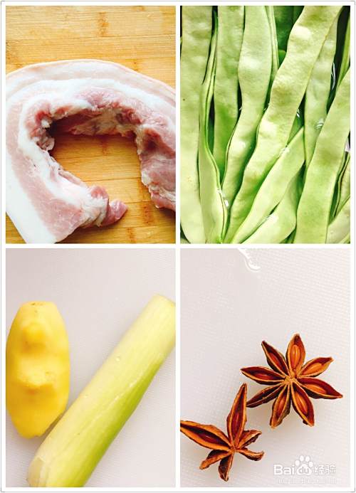 猪肉片、小扁豆角、姜片或粗丝(不喜欢姜的时候就挑)葱、茴香切碎就够了。