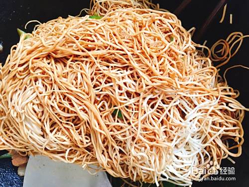 面条一定要蒸够时间不粘不坨,面条抖散放进菜锅里与锅里的剩余的菜和汤拌匀,之前盛出来的汤一勺勺的浇面条上多抖多拌,拌至没有白面条