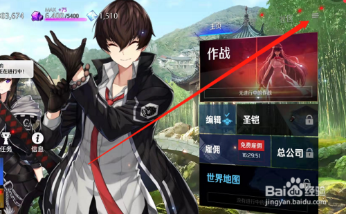 首先我们打开手机里的异界事务所手游,进入游戏后,我们点击箭头所示的三条行;