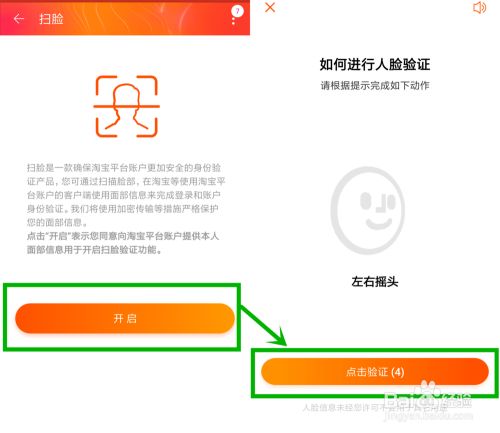 在【扫脸】界面我们点击【开启】选项等待一段安全扫描后,会出现提示验证界面,我们点击【点击验证】,按照要求多试几次完成验证