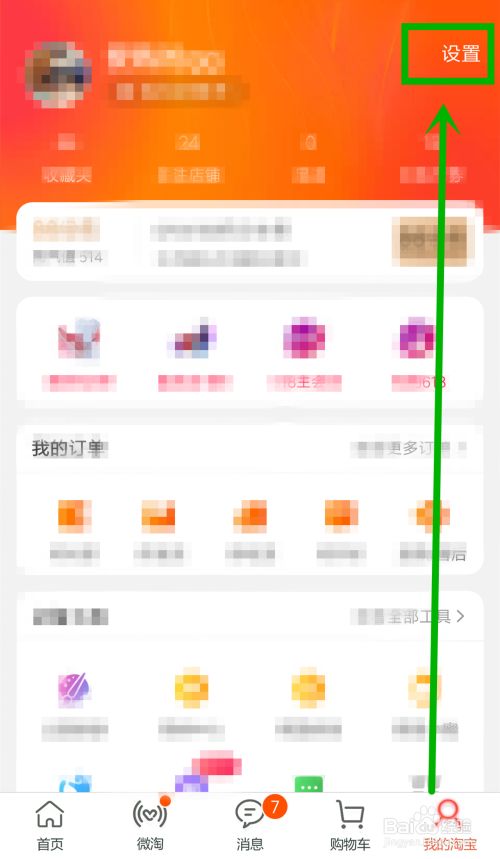 在进入【我的淘宝】详情界面,点击右上角的【设置】选项