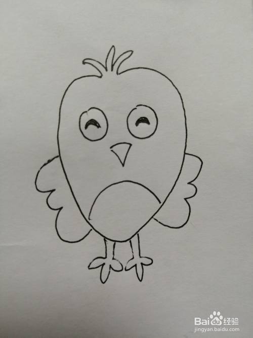 第七步,最后在可爱的小鸟的身体下面画出两只小脚,可爱的小鸟就画好了。