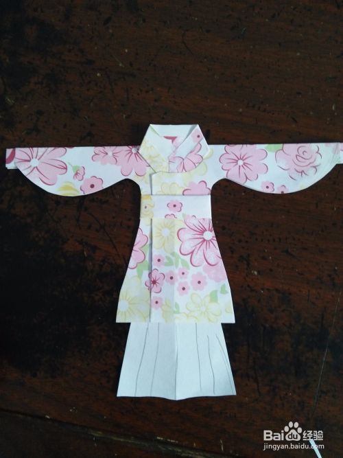 再把彩纸向后对折下,如图一。我们用笔在折好的彩纸上画上衣服的形状,我的绘画不太好,小伙伴们不要笑话我哦!