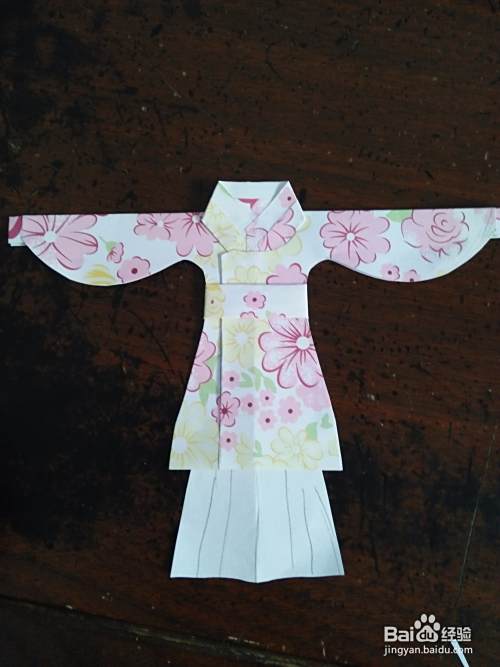 把下面的裙摆用胶水固定在衣服的下面,汉服书签就完成了。这次的汉服领口剪得有些大了,再小点就更好看了。