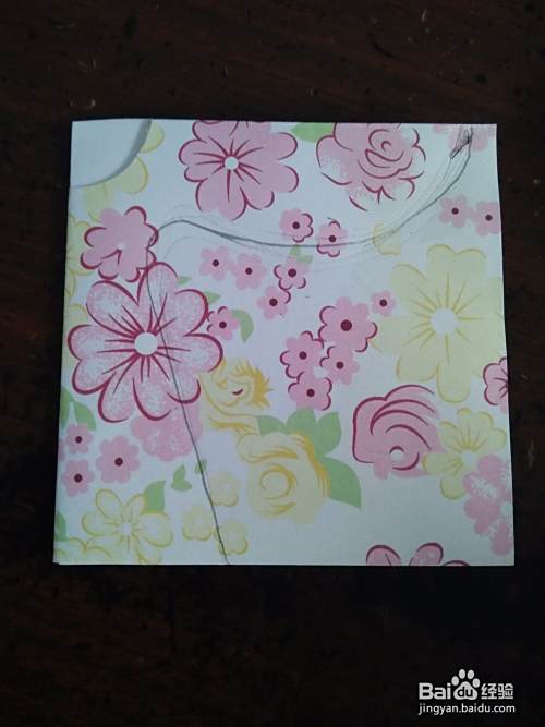继续在把彩纸的中线对折一次,看图一。我们在折好的纸上用笔画上四分之一圆。不要画的太大,否则就不好看了。