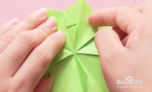 按照折痕将每一个三角形都打开,再次往里折。
