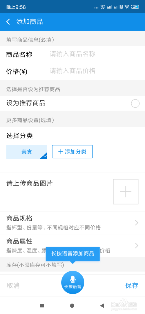 进入商品添加界面 此时就可以添加你的商品 添加后就开通你的商铺啦