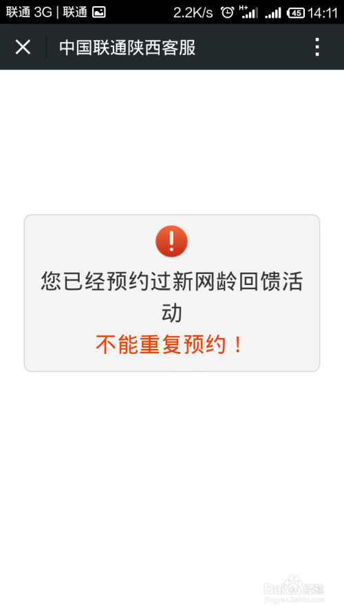 3、您已经预约过新网龄回馈活动,不要重复预约。