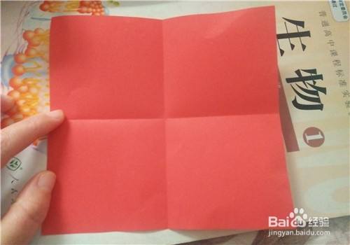 先把彩纸的中线对折,再把上下边分别向内折彩纸的六分之一,如图。