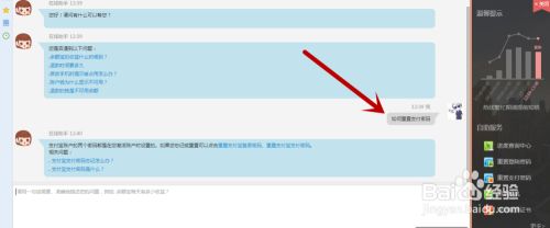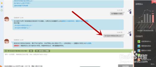 打开支付宝客服对话框后,在输入框里输入需要咨询的问题,例如询问如何重置支付密码?如下图: