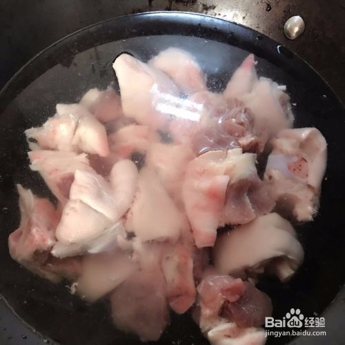 买回来猪蹄先将猪蹄洗净剁成块(我是直接菜场剁好买回来的),锅里烧一锅开水,待水滚后将洗净的猪蹄放入锅内,盖好锅盖等水再开时,拂去水面的泡沫,继续大火烧2分钟,捞起控干水分!