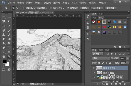 接下来我们复制图片图层,然后执行图像-调整-去色命令。