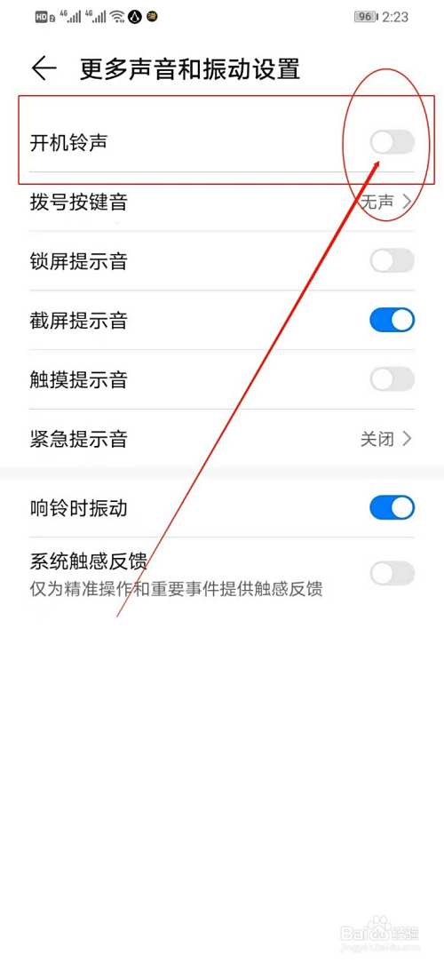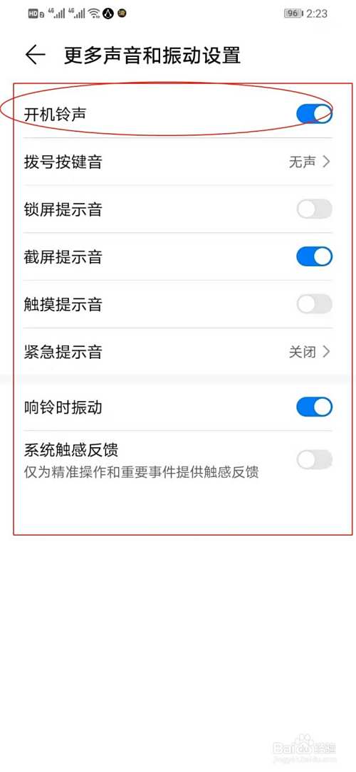 点开“更多声音和振动设置”,在新的界面找到“开机铃声”,如图