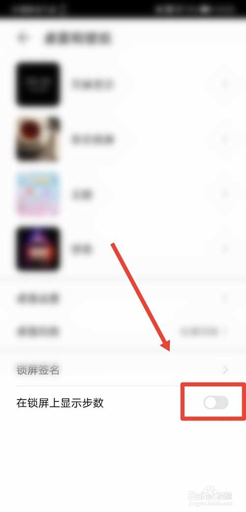 进入到桌面壁纸页面后,即可看到“在屏幕上显示步数”功能,并且该功能是开启的;