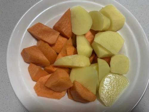 7胡萝卜,土豆去皮洗净切滚刀块。