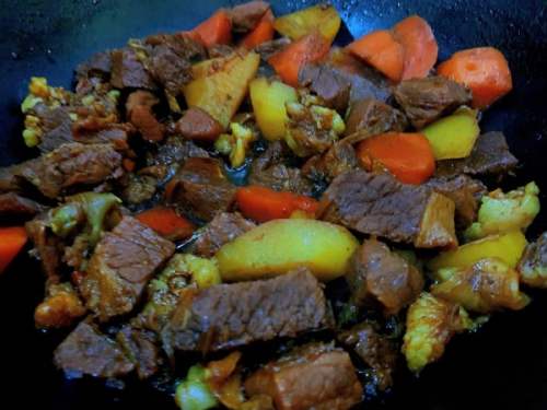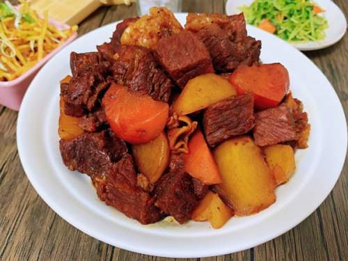 胡萝卜和土豆吸饱了牛肉的汤汁比肉还香。