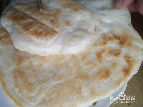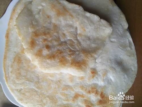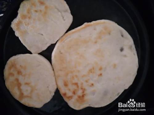 待表面金黄时再把面饼翻一下面,再烙1-2分钟就熟了。
