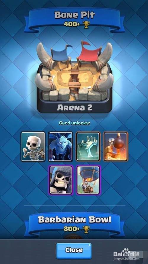 3.竞技场:按奖杯划分。训练场相当于单机模式,无收益,可以在训练场中试验自己的新卡组是否好用。