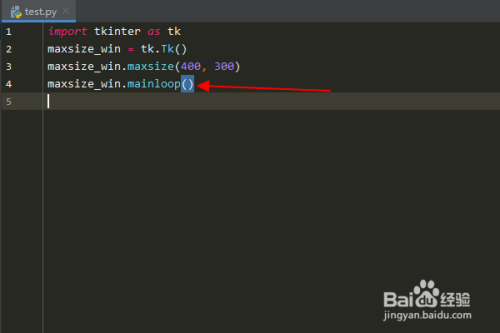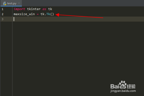 输入:“maxsize_win = tk.Tk()”,创建一个 tkinter 窗口。
