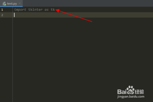 在python文件编辑区中,输入:“import tkinter as tk”,导入 tkinter 模块。